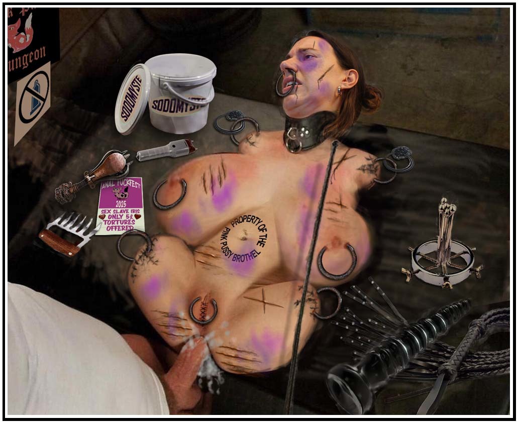 Chained up, my pussy sewn shut, I'm available to customers for only £5, with torture offered at no extra cost. The Pink Pussy managers distributed flyers throughout Pagetsburgh, and the Anal Fuck Fest has been extended to cover the entire month of August instead of the usual first two weeks. Unfortunately for me, due to the high inflation, the managers only bought one jar of "Sodomyste" for the entire event, and it was emptied on the first day...