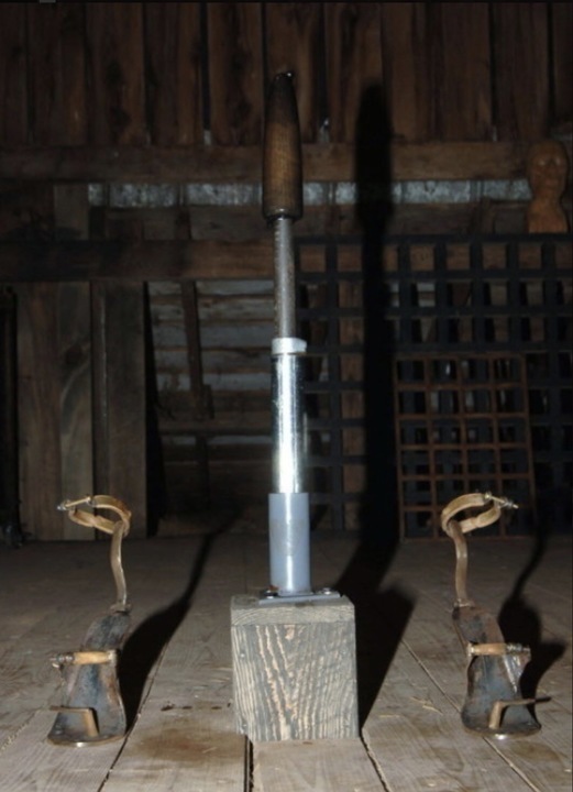 So wie das ausschaut, hat der "Schuh" keine Ferse, die Sohle ist wohl aus Federstahl, so das sie wenn sie drauf steht, sich selbst fickt. Ob sie will oder nicht :D Ein Kondom über das Holzdildo sollte aber aus Sauberkeitsgründen auf jeden Fall verwendet werden.