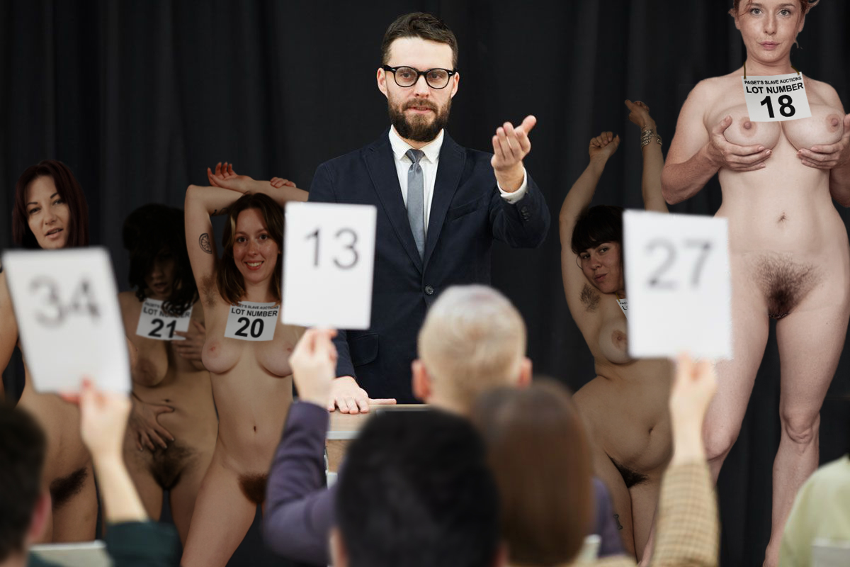 This morning's auction went well with good prices being bid. Some fine pairs of tits came up for sale and as I had left several of them unshaven for a few weeks there was much interest from the slave hunting fraternity looking for future sporting... moreThis morning's auction went well with good prices being bid. Some fine pairs of tits came up for sale and as I had left several of them unshaven for a few weeks there was much interest from the slave hunting fraternity looking for future sporting trophies. Indeed I understand that Lot 20 is already in the trophy workshop where her lovely red bushed genitals have been cut out for preservation and display along with her head, udders and navel.