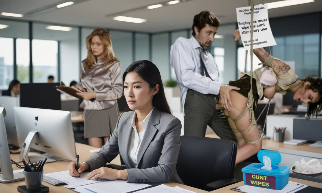 Male employees who are feeling randy can now put their jizz where it can really make a difference. A duty cunt roster is drawn up and supervised by one of the office managers. Time from zip down to zip up is logged and deducted from his working time.