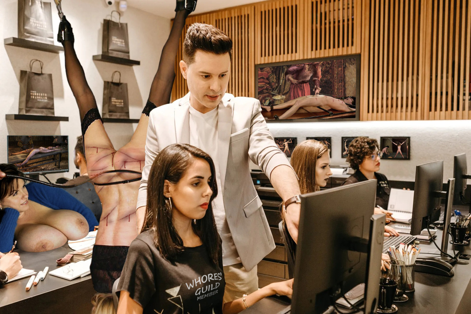 Membership of the Whores' Guild is compulsory for all female staff. This encourages staff interactions and cuts down the time lost when senior management are feeling randy. "Anyone, anytime, anywhere, anyway" does much to improve staff satisfaction.